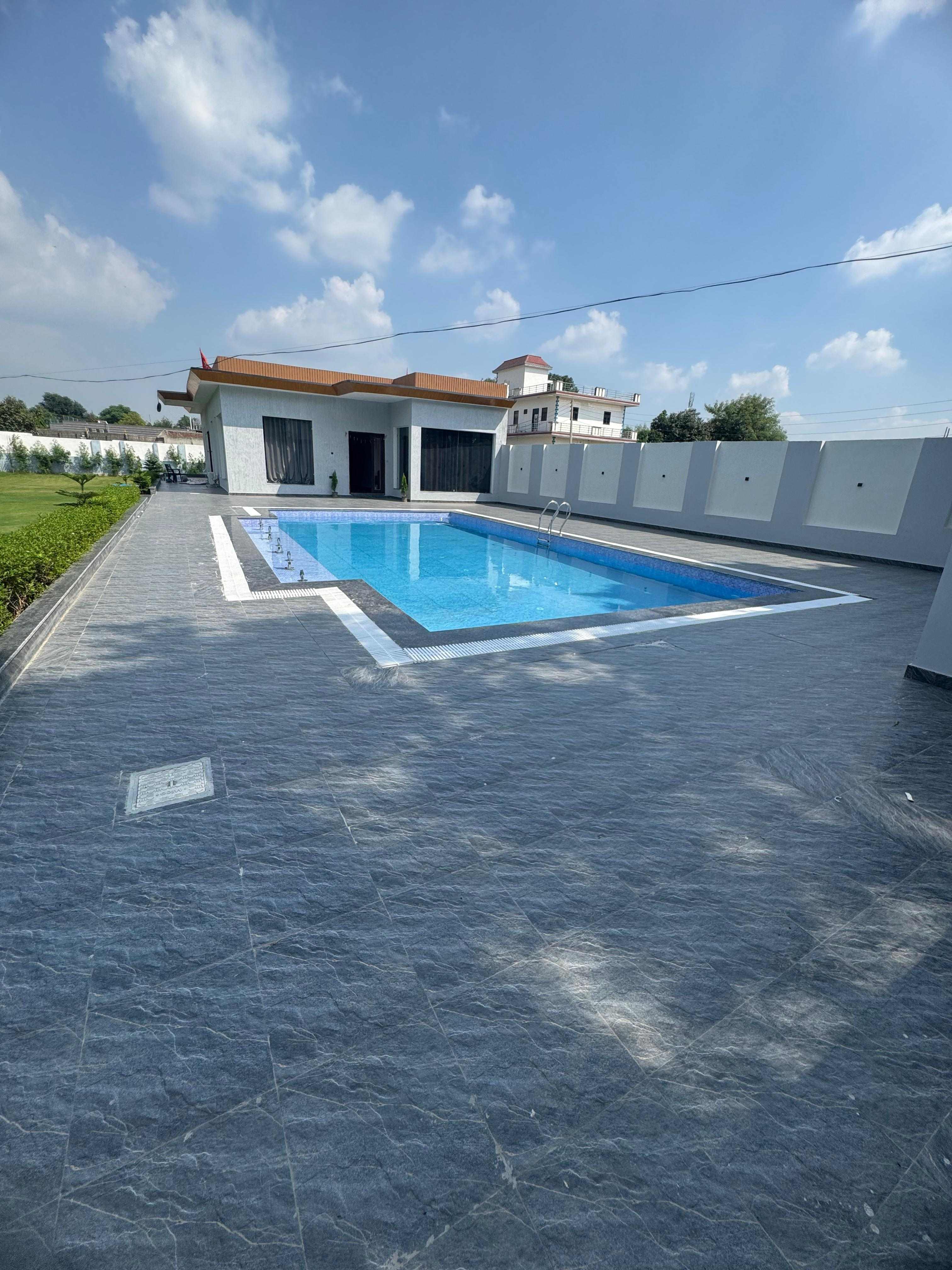 Escape to a lush green 4Bhk paradise offering a pool, boasting a scenic view. Enjoy the convenience of a fully equipped kitchen and all basic amenities, creating a perfect blend of entertainment, relaxation, and comfort for an unforgettable stay.