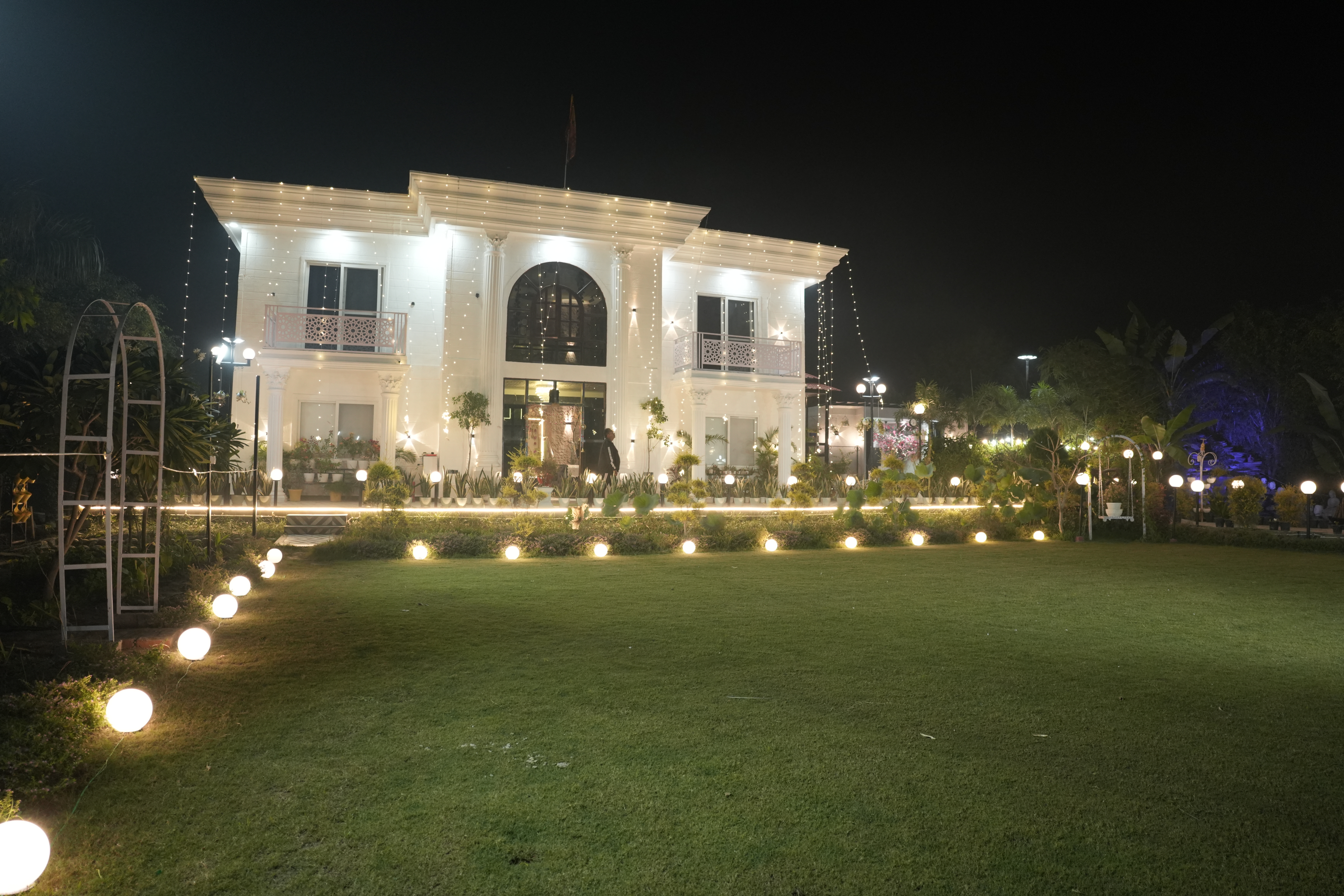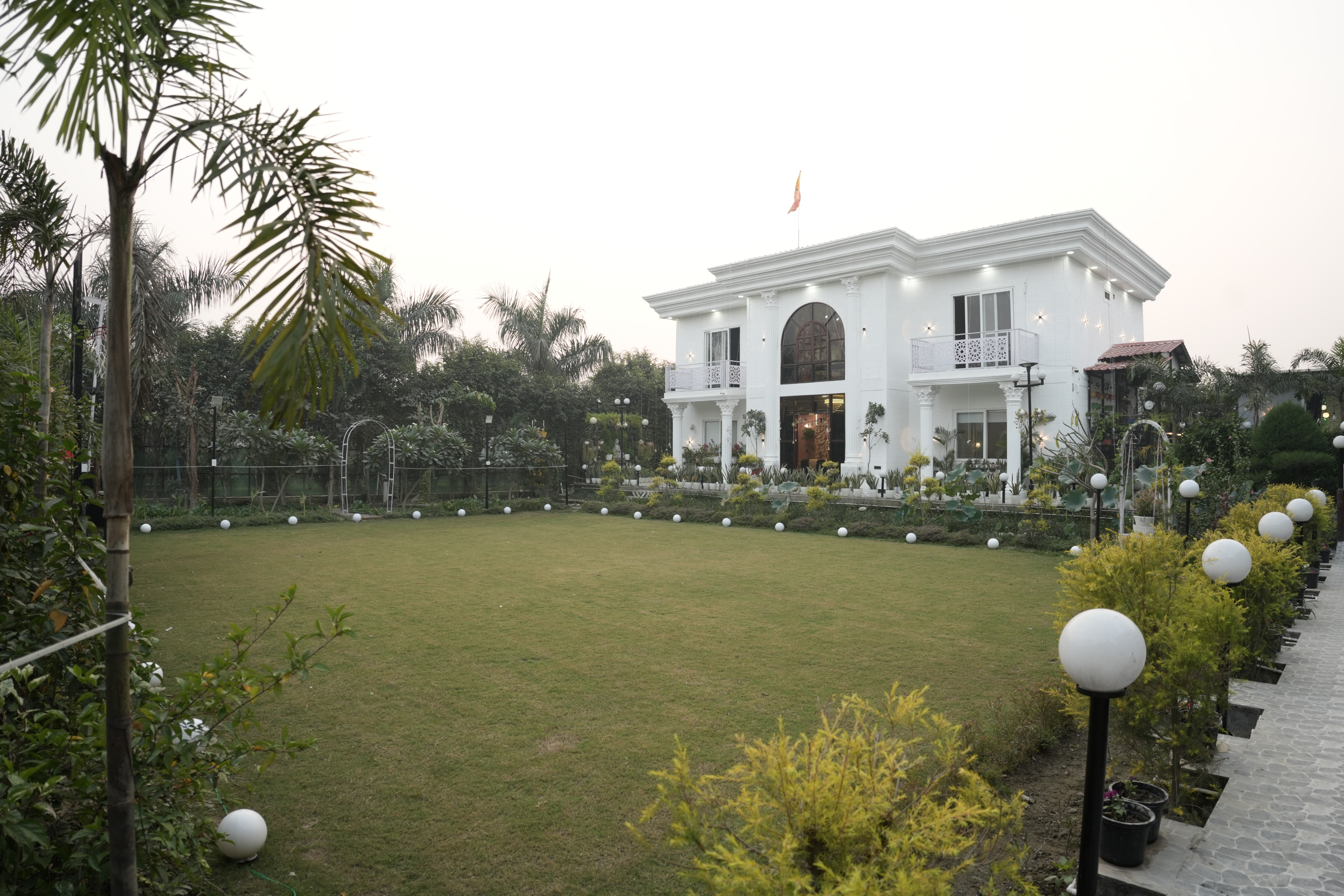 A luxurious 5Bhk pool property located in Noida. Immerse yourself in the beauty of lush greenery and scenic views, while enjoying the convenience of a fully equipped kitchen and all essential amenities for a truly memorable stay