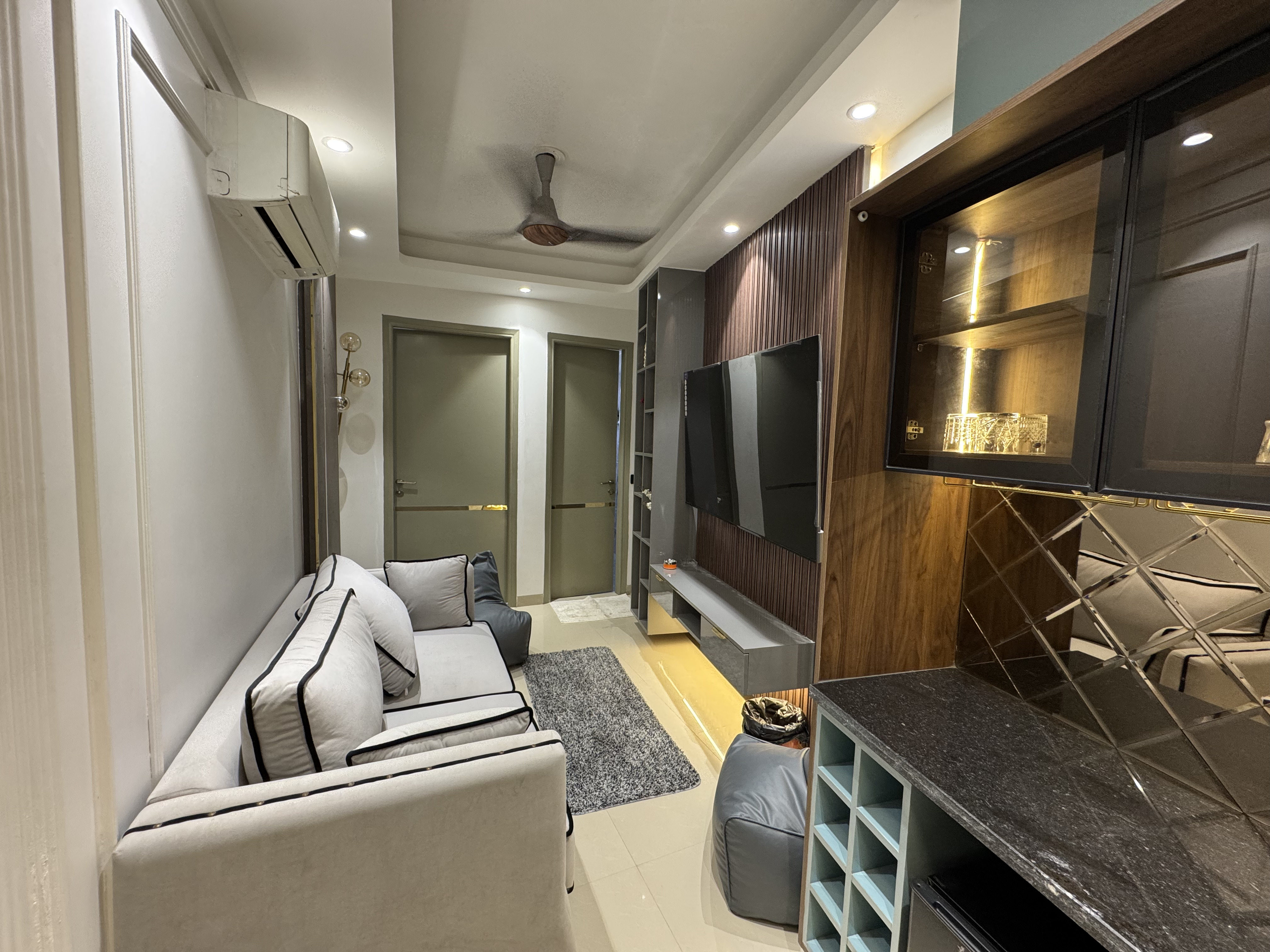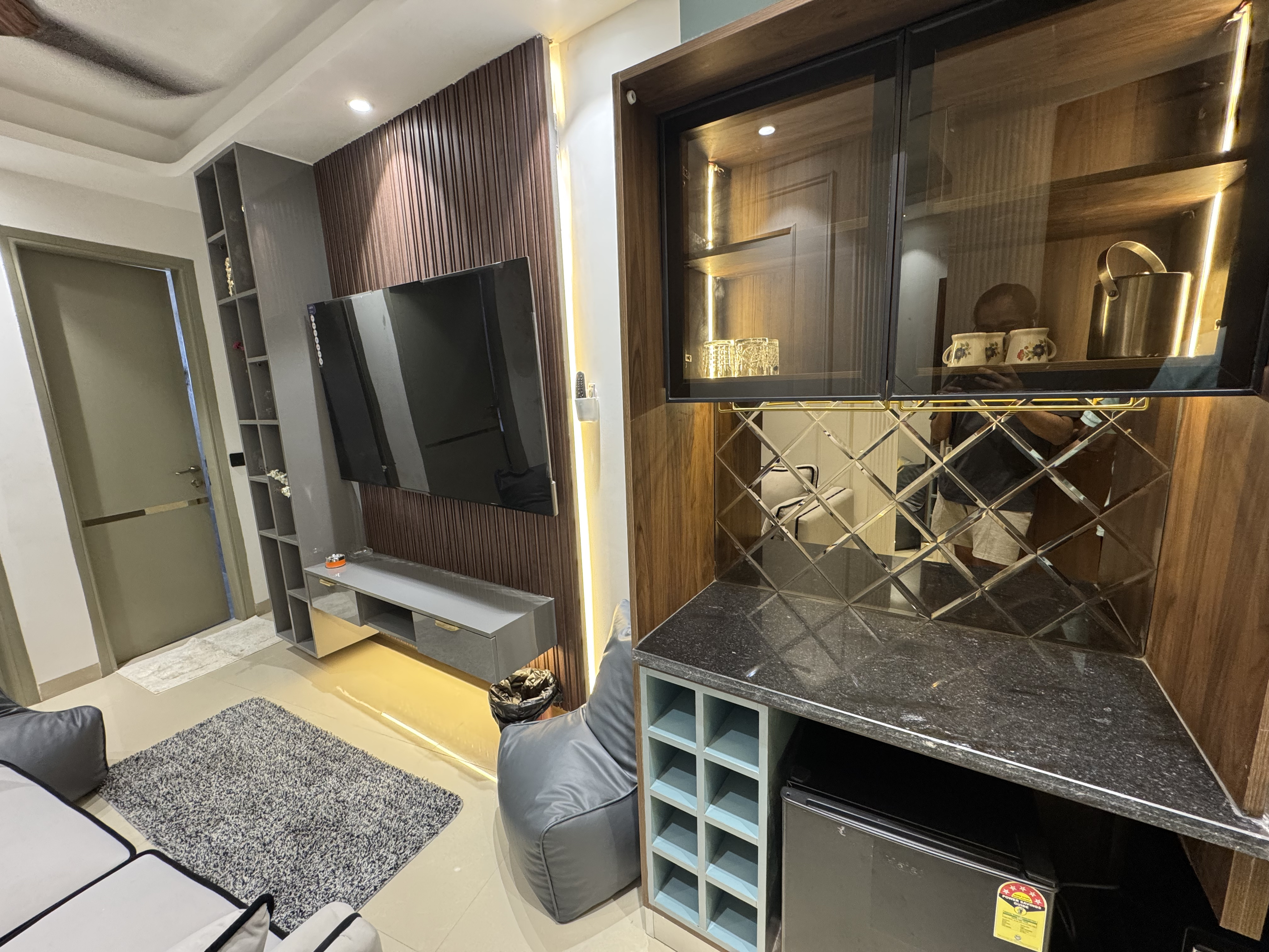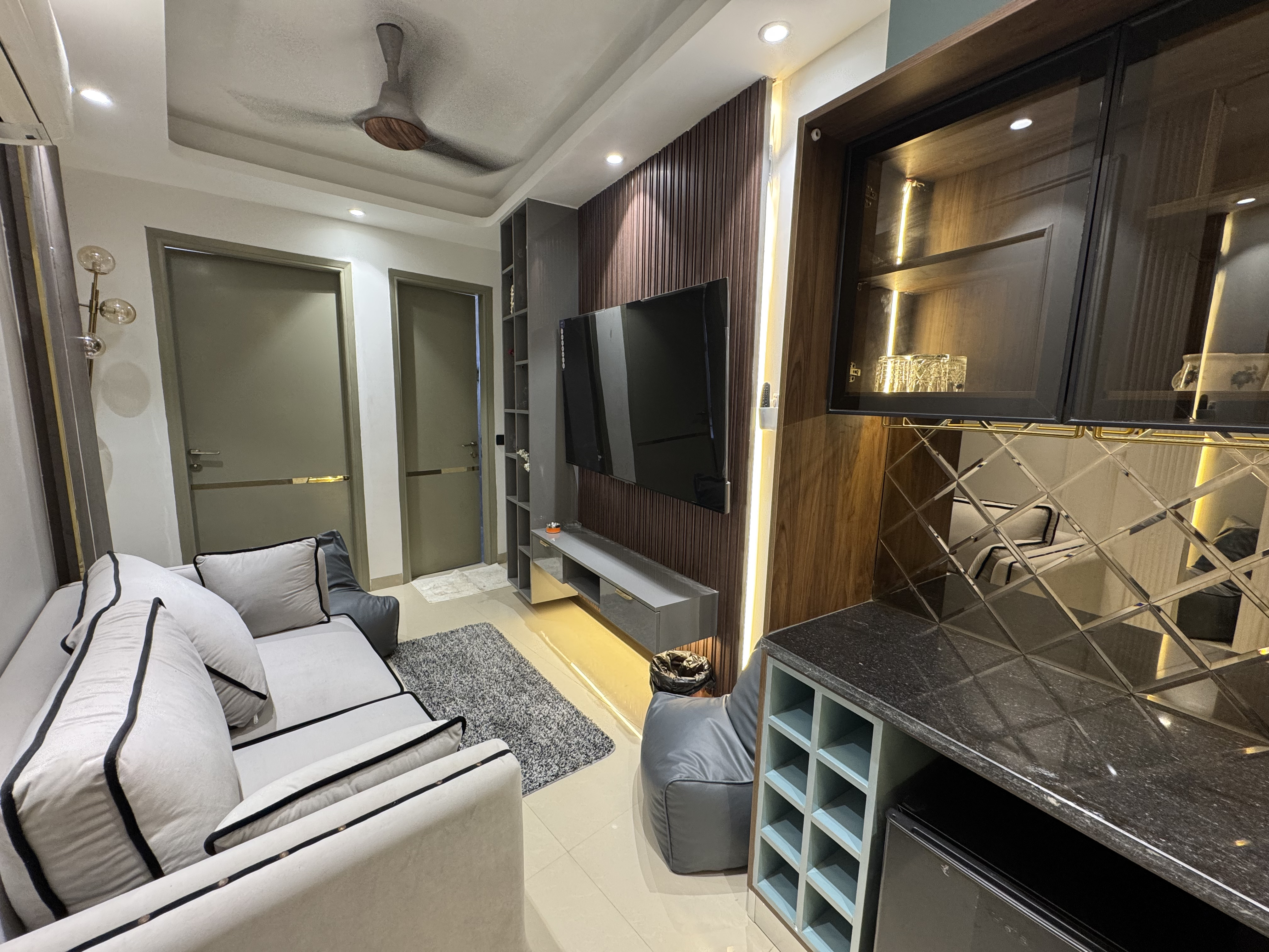 Saket, New Delhi A fully furnished 1bhk apartment with living room, kitchen and all basic amenities.