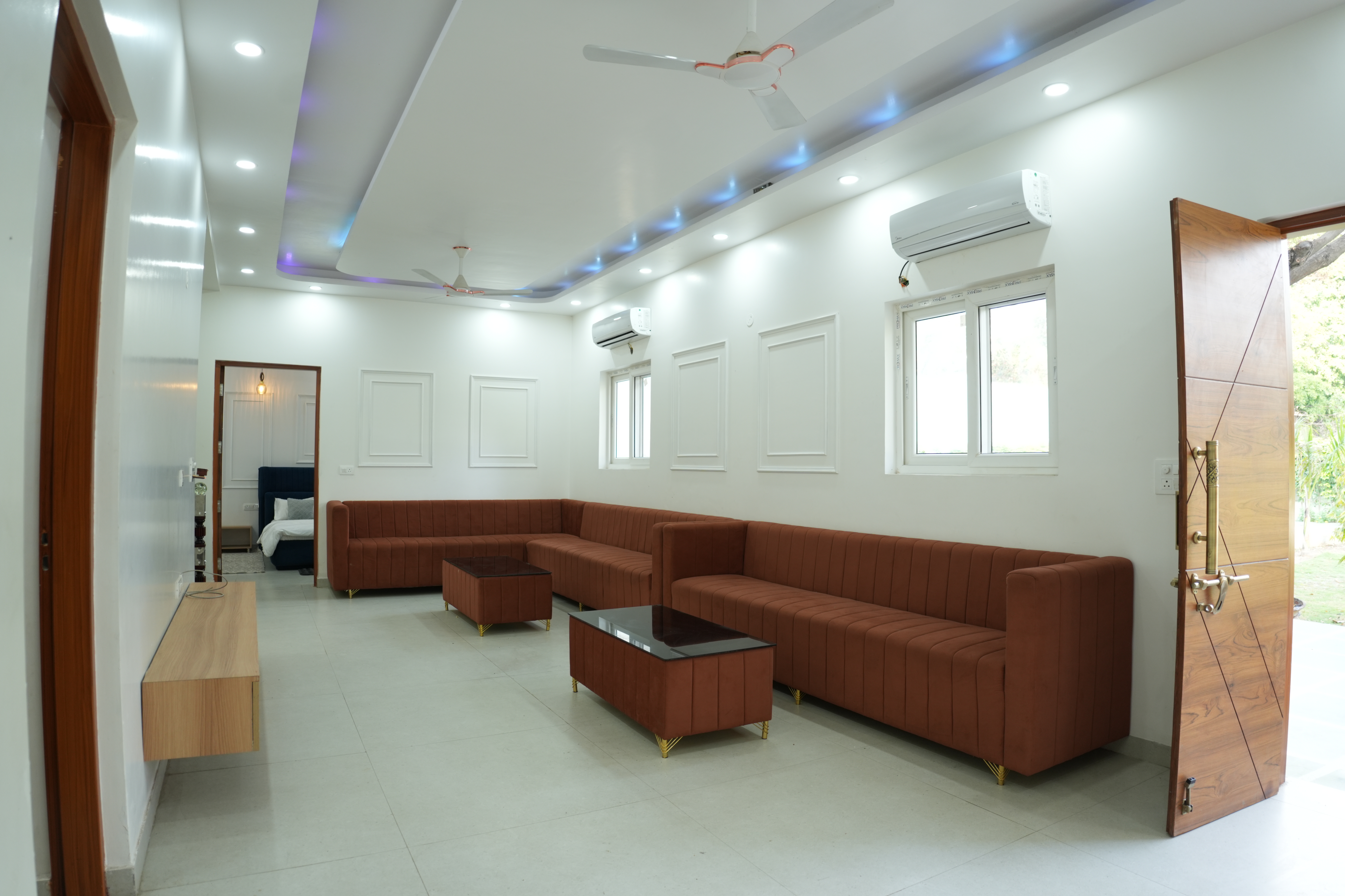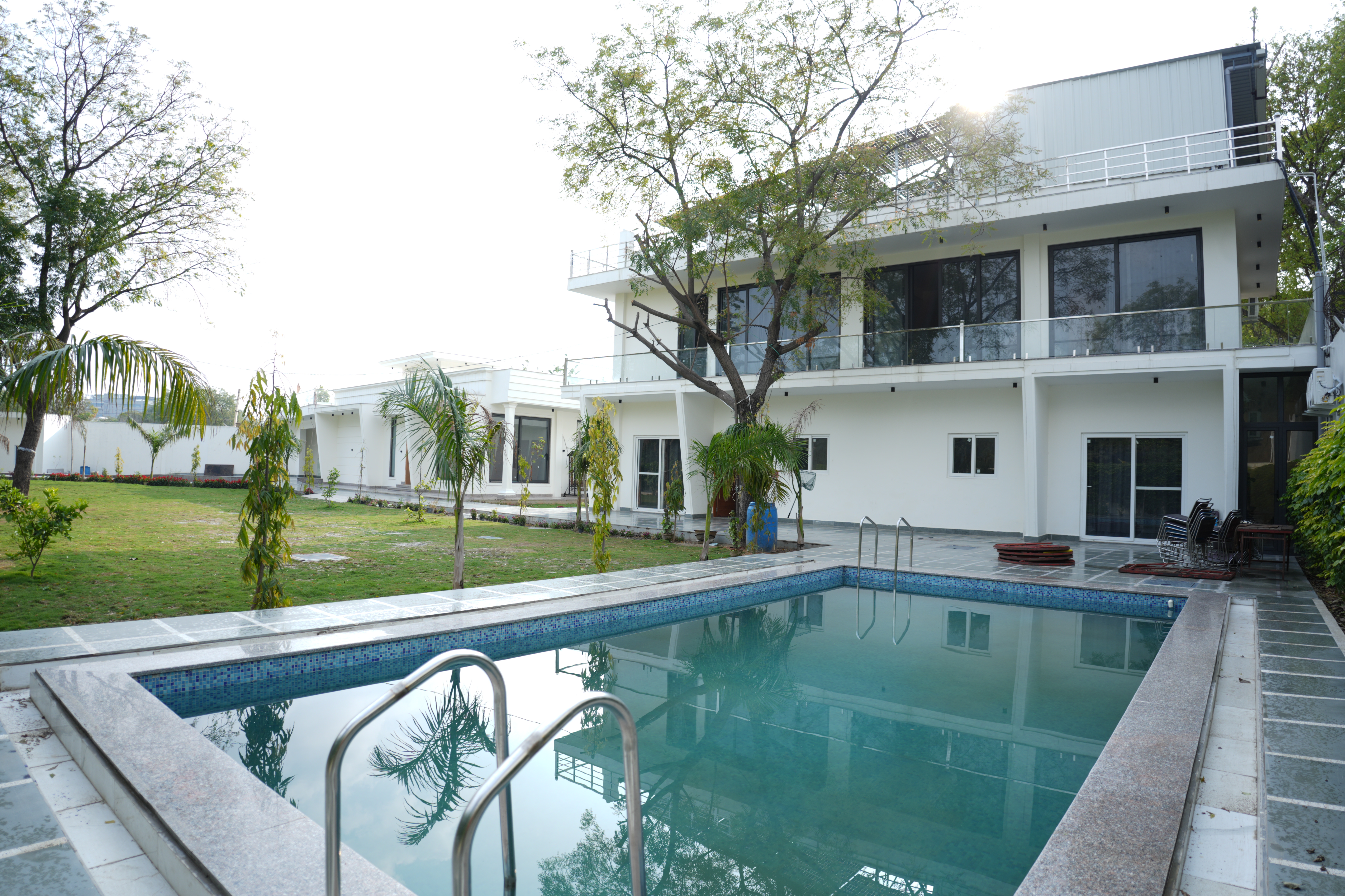 A luxurious 6Bhk pool property located in KapasHera. Immerse yourself in the beauty of lush greenery and scenic views, while enjoying the convenience of a fully equipped kitchen and all essential amenities for a truly
