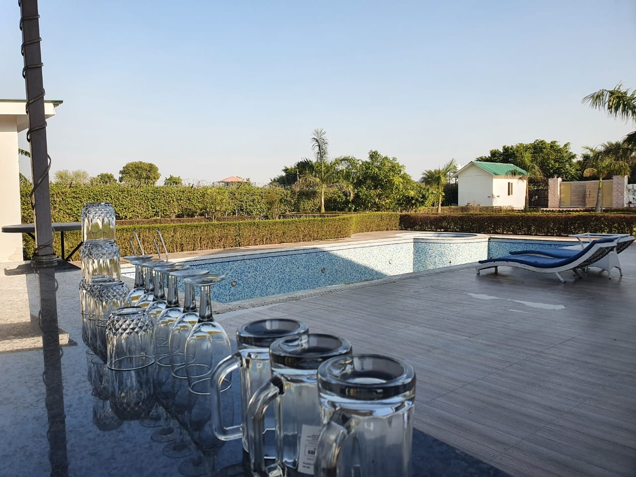 Experience luxury and serenity at this lush 3Bhk pool villa in Noida. With a party hall, fully