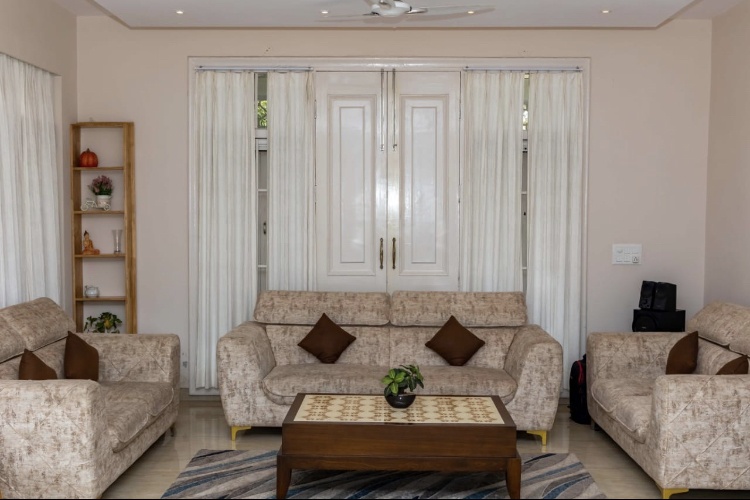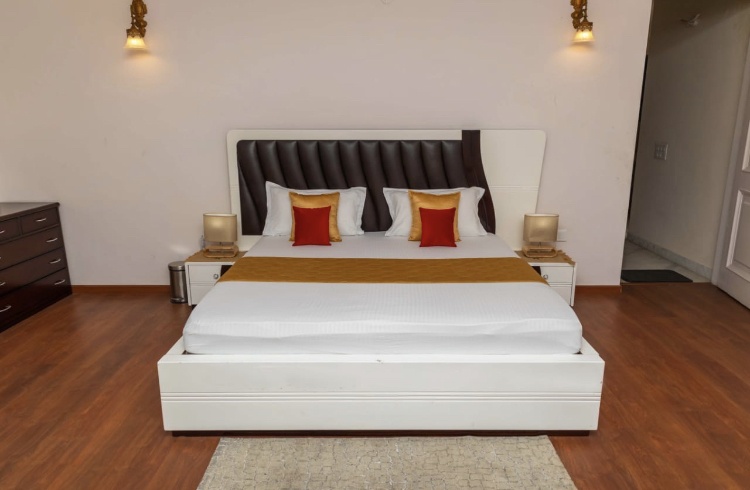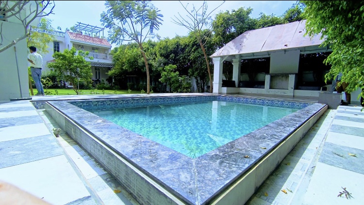 Escape to a magnificent 5Bhk farmhouse with a sprawling lawn, a large