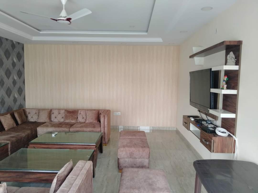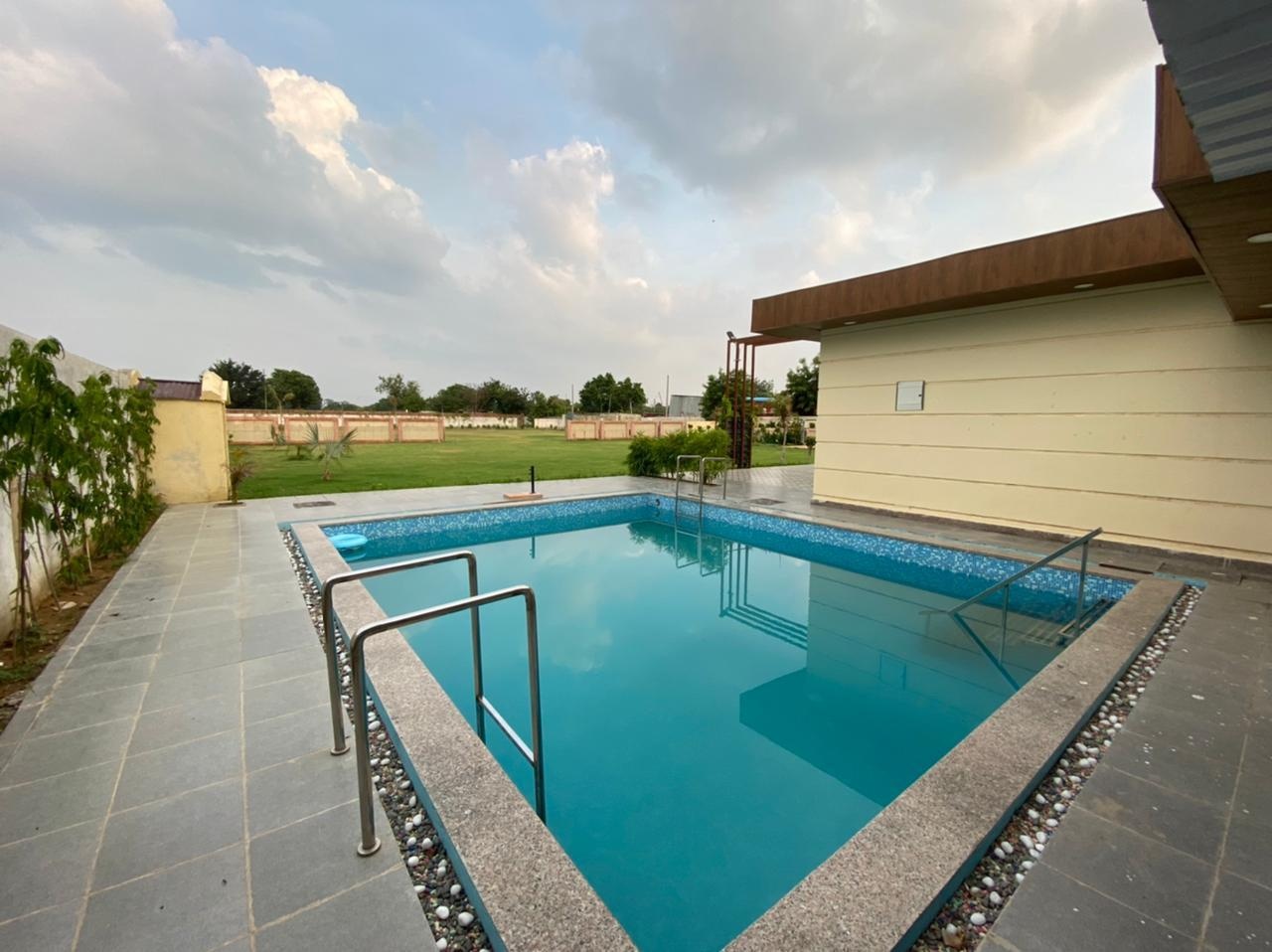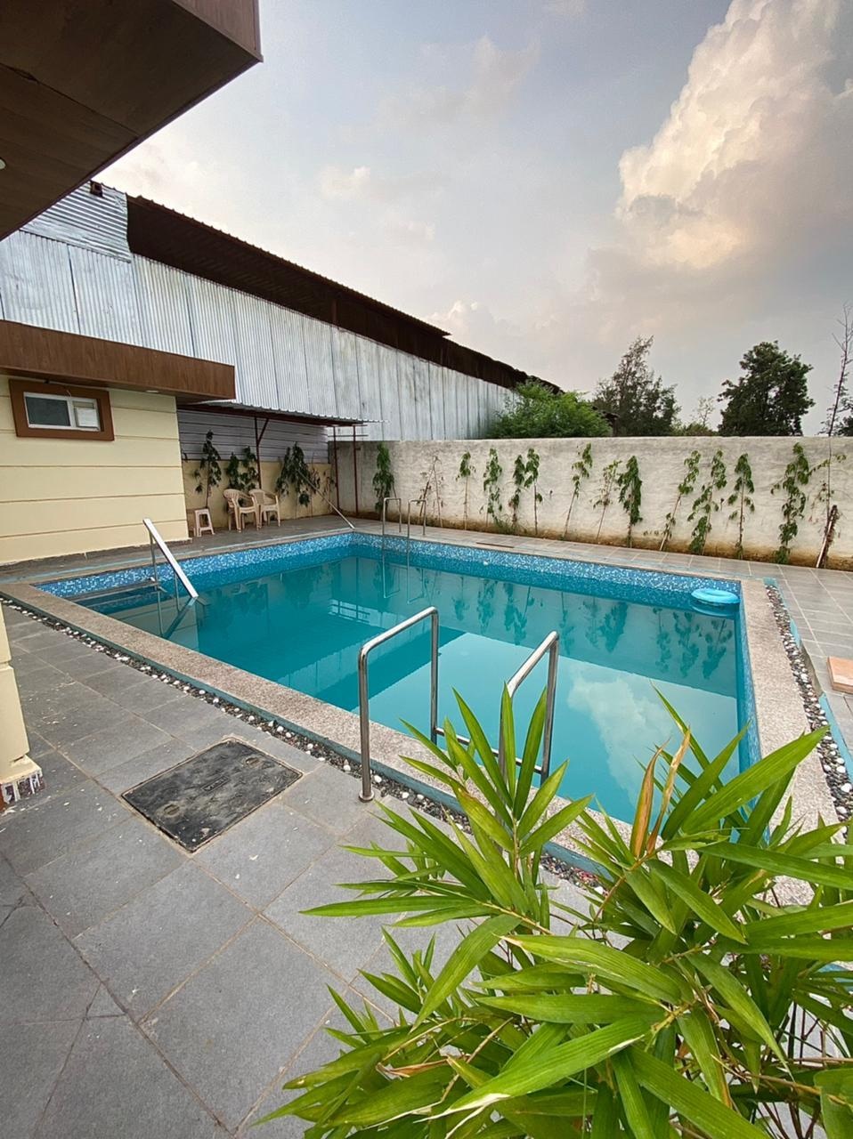 pool, expansive lawn, and a spacious living room, complemented by all essential amenities for