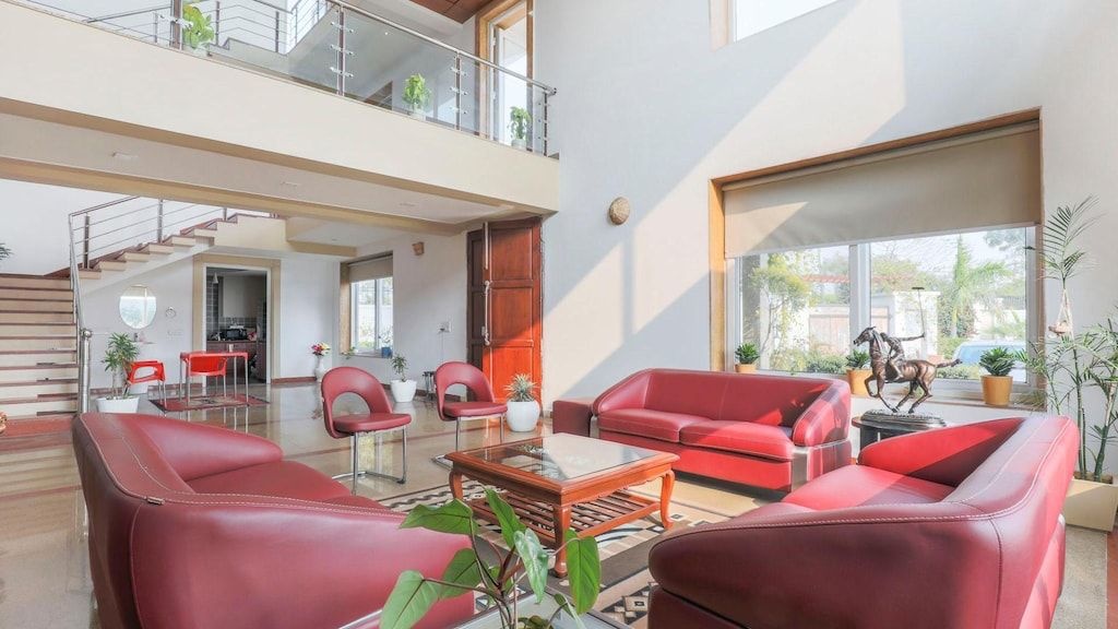 Discover a serene paradise in this luxurious 4 Bhk pool villa surrounded by lush greenery Enjoy