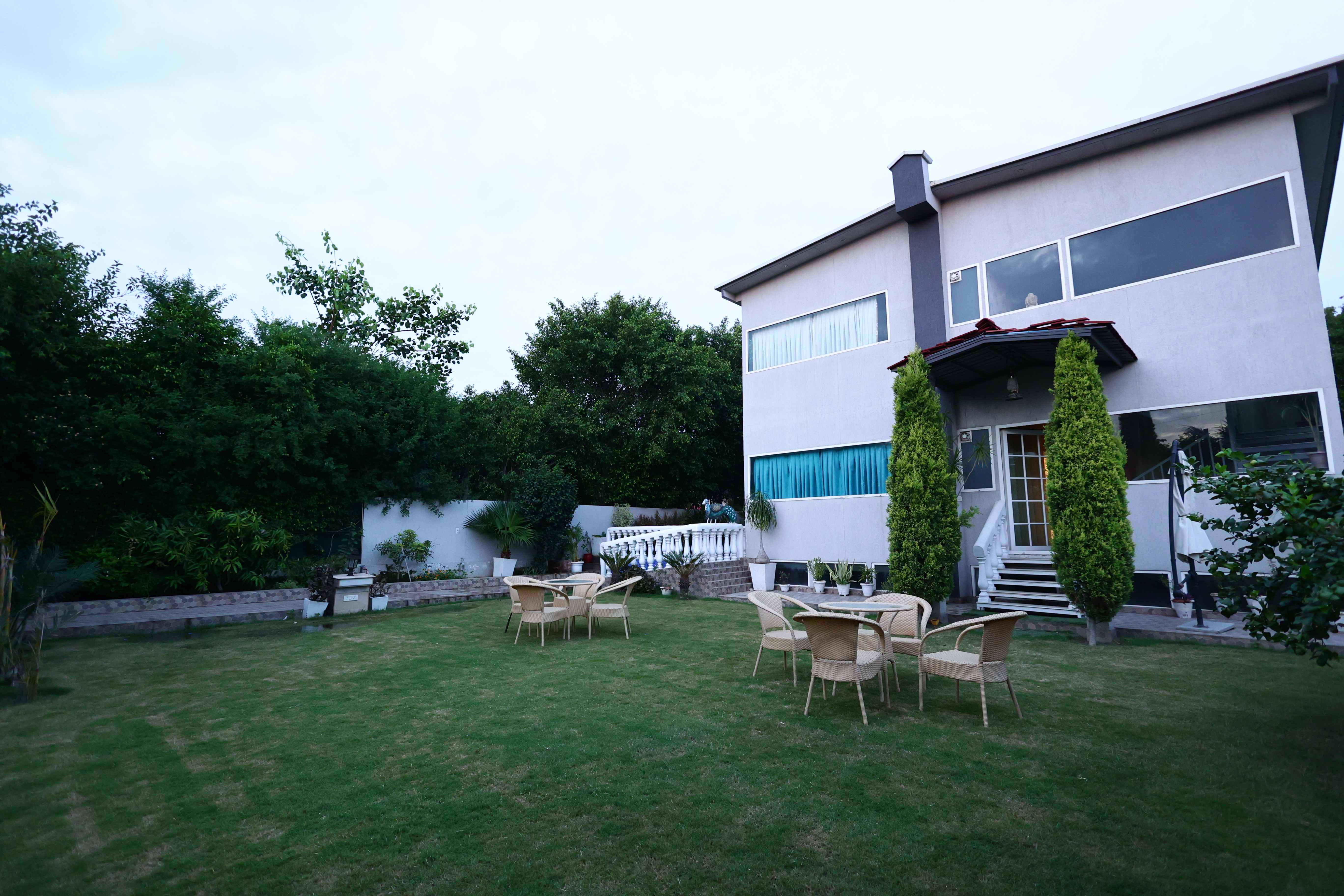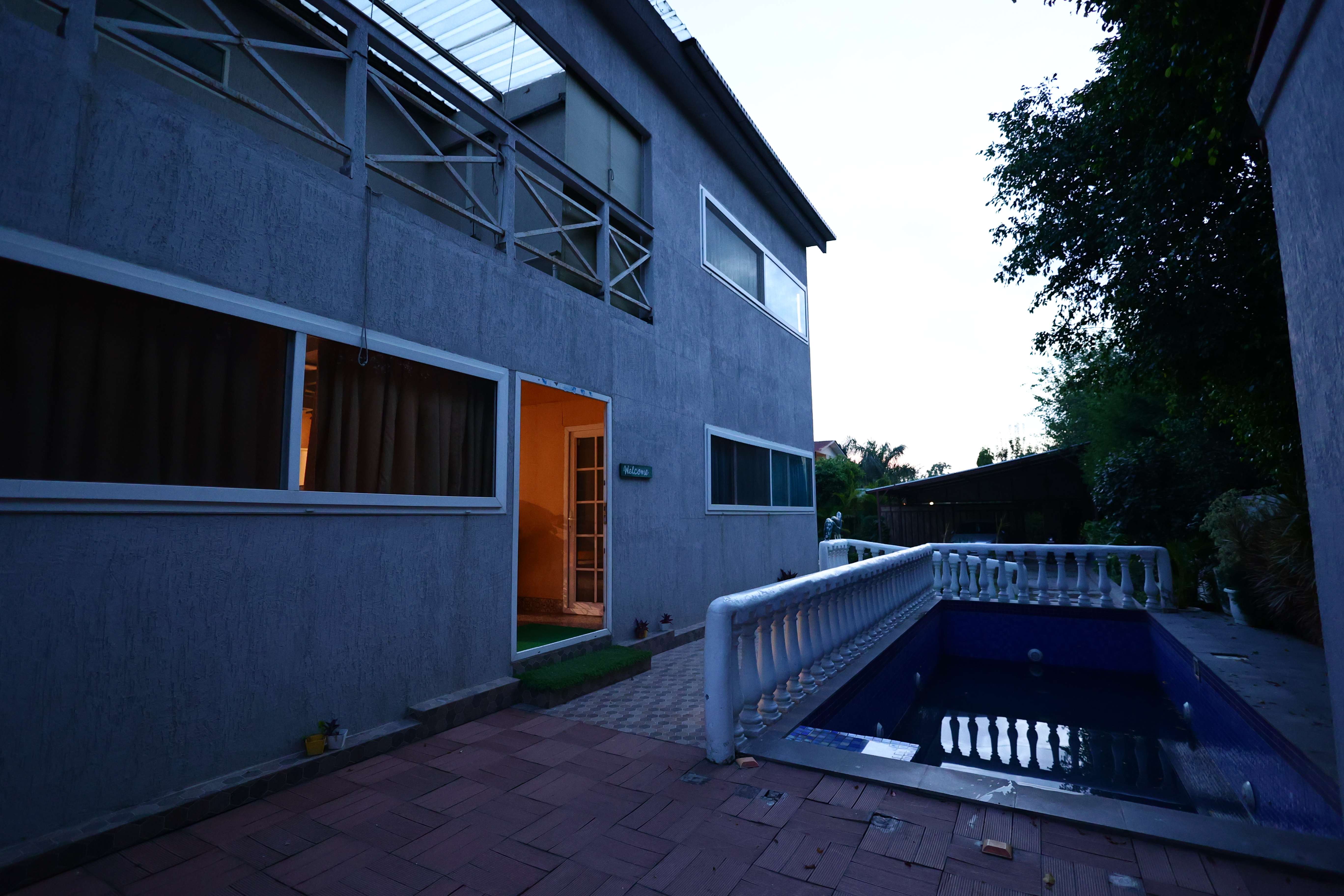 Experience luxury and serenity at this lush 3Bhk pool villa in Noida. With a party hall fully