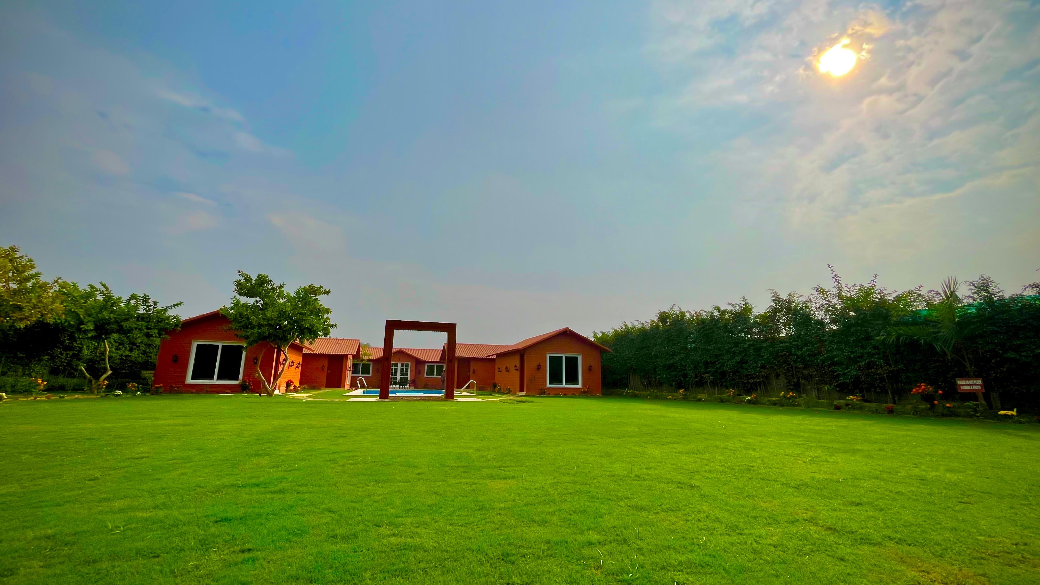 A Lush Green 4Bhk Pool property with beautiful seating space ,Kitchen, Huge living room & all basic amenities. -10 Mins From Amrik Sukhdev Dhaba.