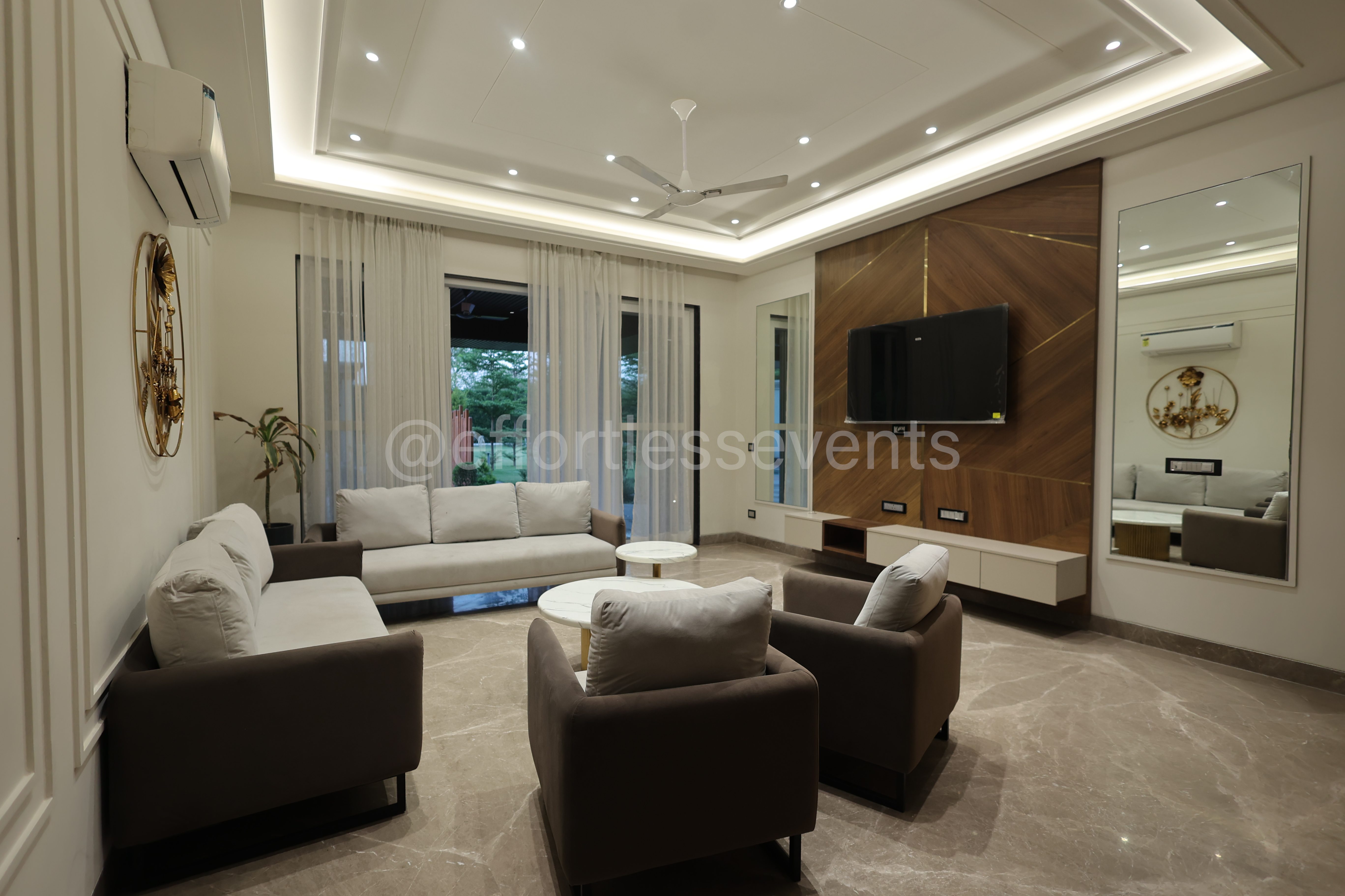 Experience the charm of a picturesque 5Bhk pool property enveloped in lush greenery. Discover a delightful seating space near the poolside, perfect for hosting sundowner events. Enjoy a well-equipped kitchen, a spacious living room, and all essential amenities, ensuring a memorable and comfortable stay.