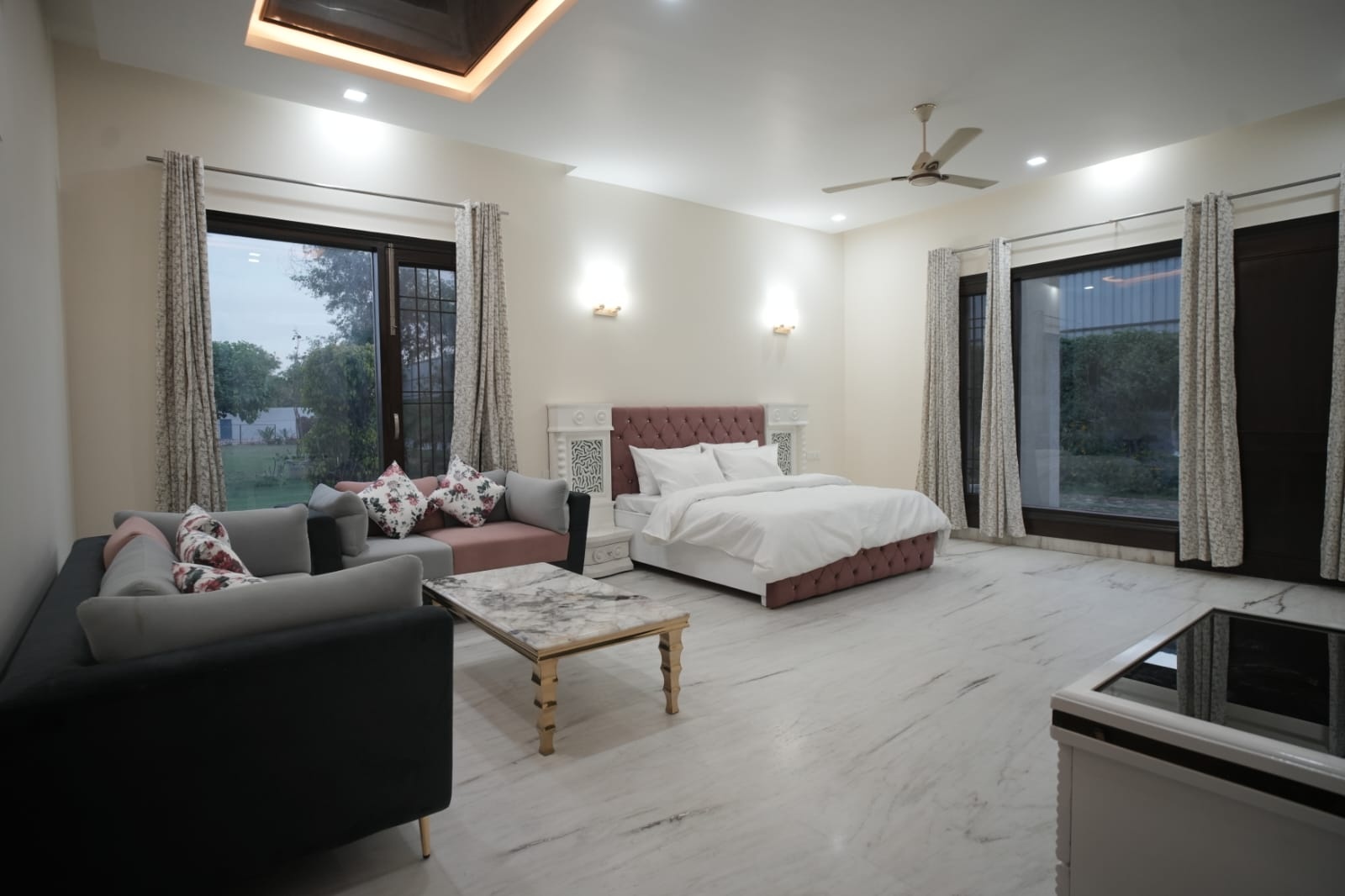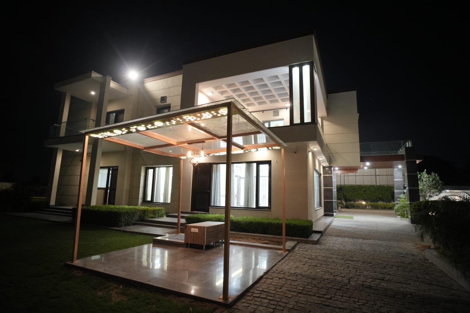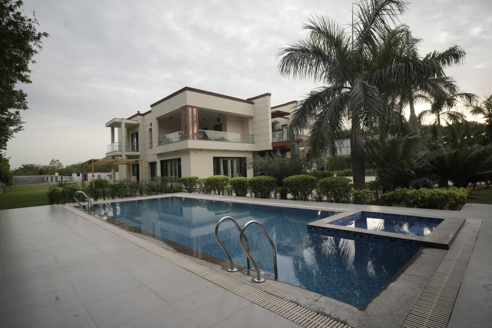 Escape to a lush green 5Bhk paradise offering a pool, boasting a scenic view. Enjoy the convenience of a fully equipped kitchen and all basic amenities, creating a perfect blend of entertainment, relaxation, and comfort for an unforgettable stay.
